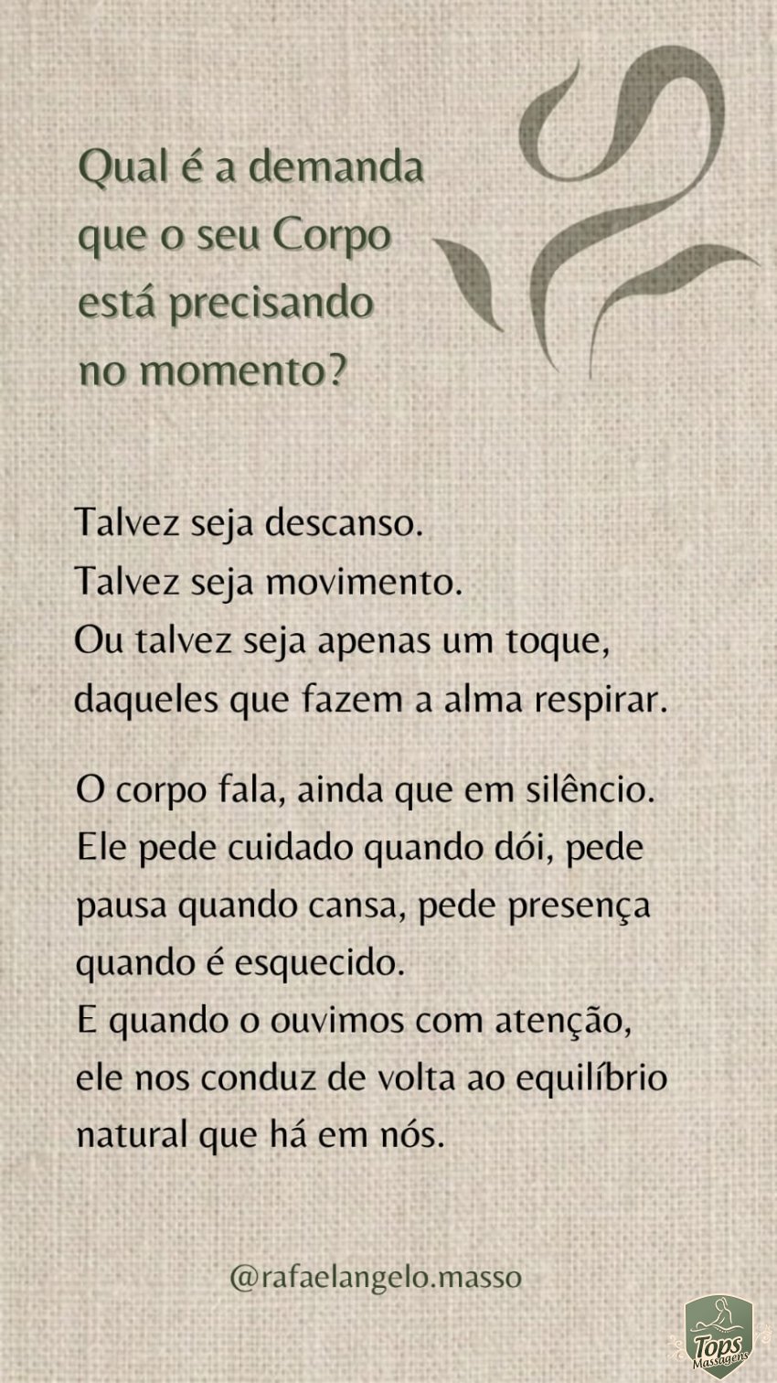 Antes de todas as sessões, será feito uma avaliação de anamnese, para entender melhor suas necessidades e de que forma posso cuidar de você.