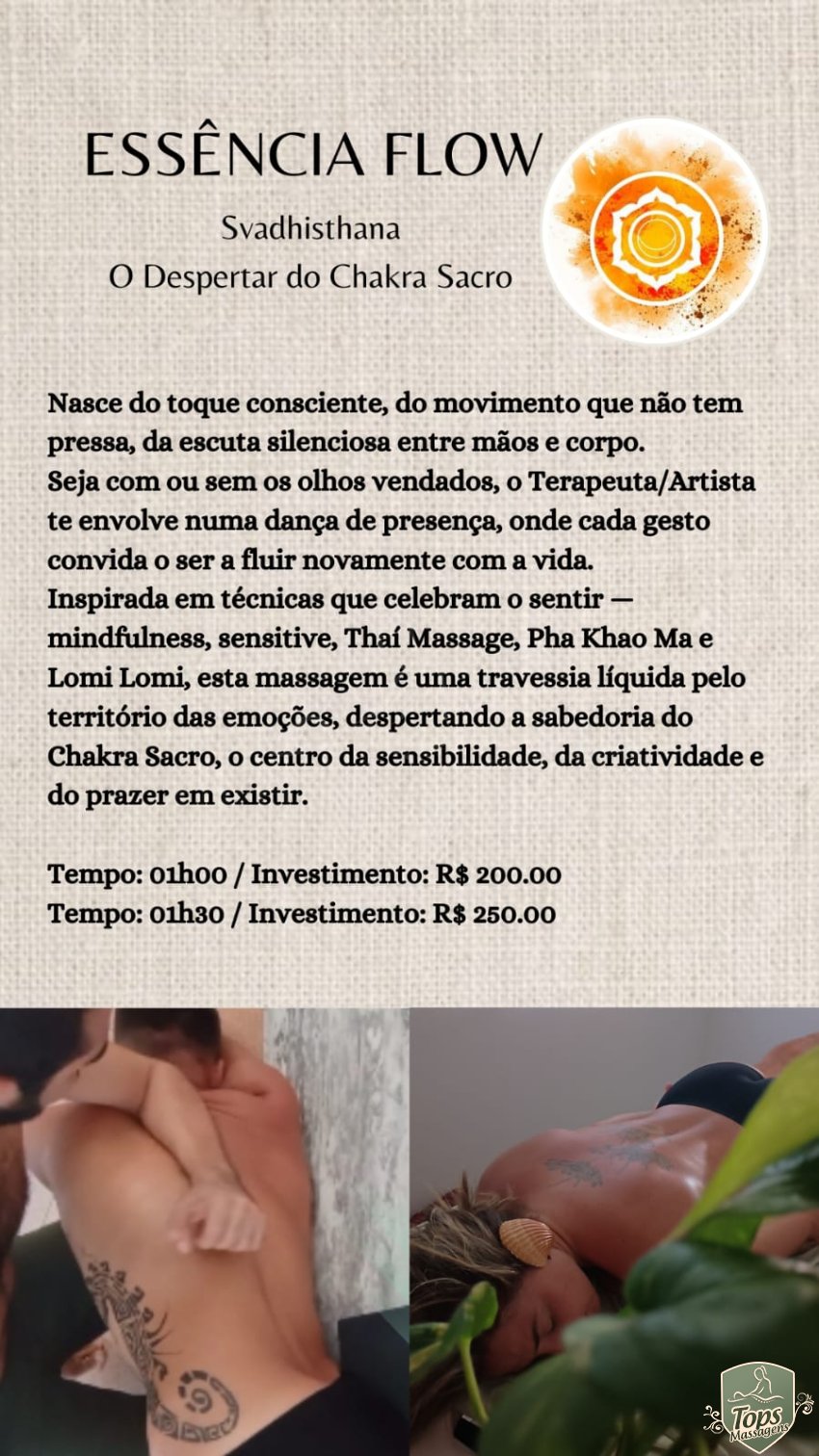 Uma massagem relaxante onde se trabalha o corpo como um fluxo de flexibilidade, mobilidade, alongamento, meditação, respirações guiadas, o movimento das ondas do mar sobre o corpo.